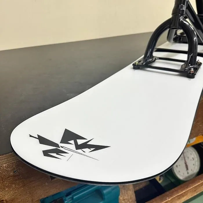 This is a one-of-a-kind full custom snowscoot, built around the latest ultra-lightweight frame kit “AR ver4.2” and paired with the powerful TORINITY SSST-V2 board set — designed for carving, freeride, and even powder.
