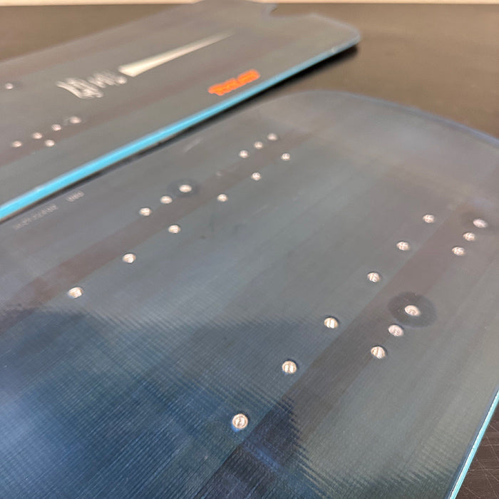 There are light cosmetic scratches on the top sheet and minor base marks from previous riding, but the board has been freshly waxed and tuned, and is fully ready for the mountain.